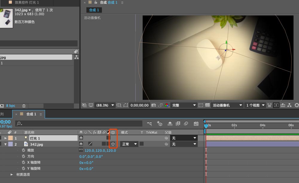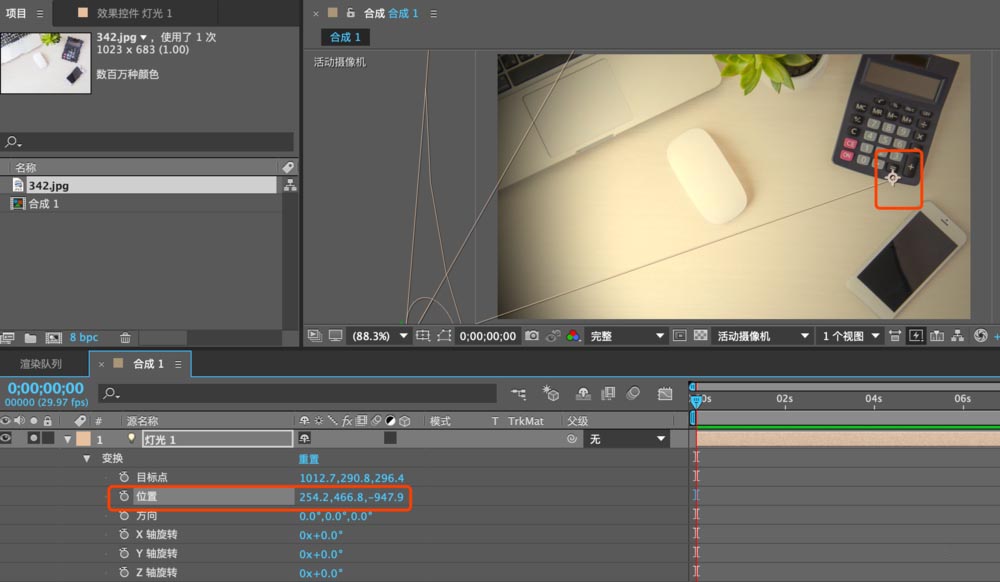 6、然后找到燈光的位置,可以調(diào)整燈光的XYZ軸數(shù)值,達(dá)到合適的效果.