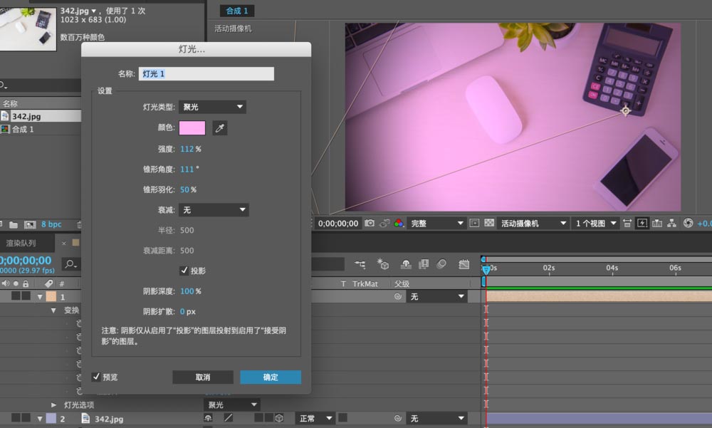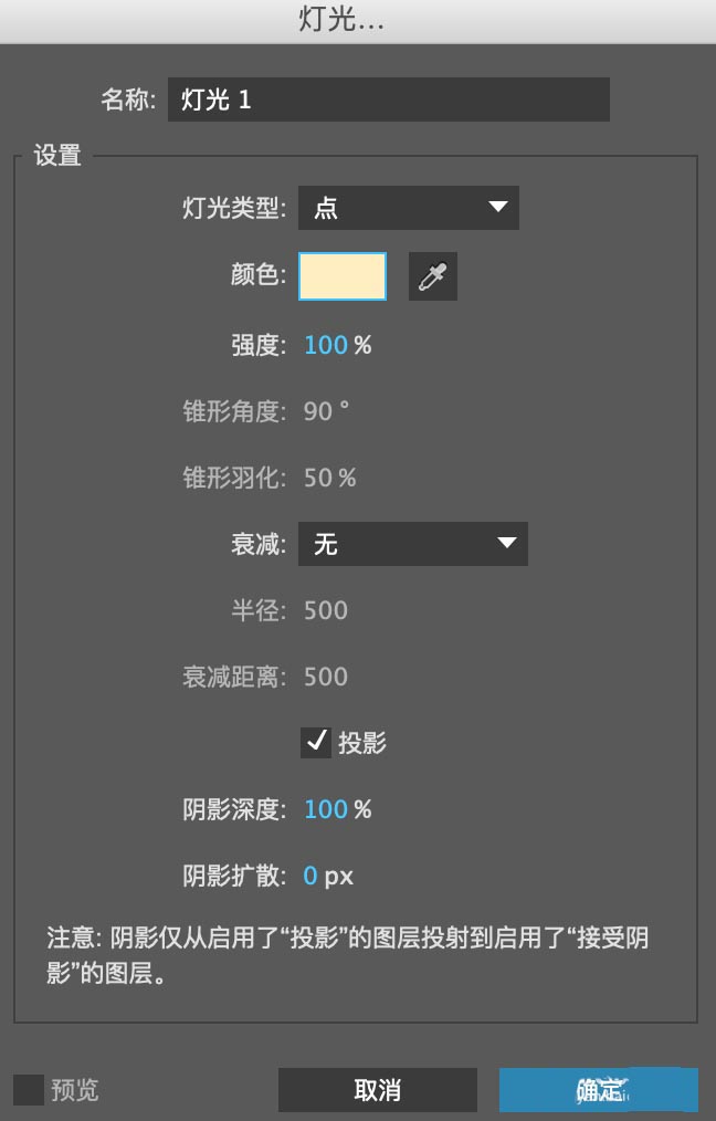 4、選擇聚光--角度100度,強(qiáng)度110%.