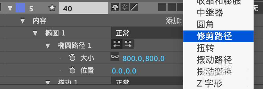 4、內容右邊三角圖標選擇添加修剪路徑。