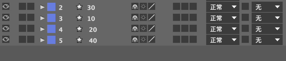 7、緊接著Ctrl+D,復制粘貼幾個圖層,分別輸入20,10,30數值。