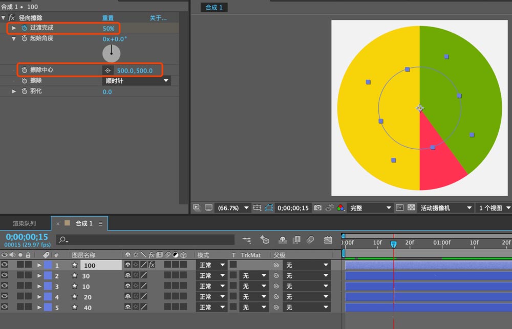 9、拷貝粘貼30的圖層,命名為100.右鍵選擇效果--過渡--徑向擦除.