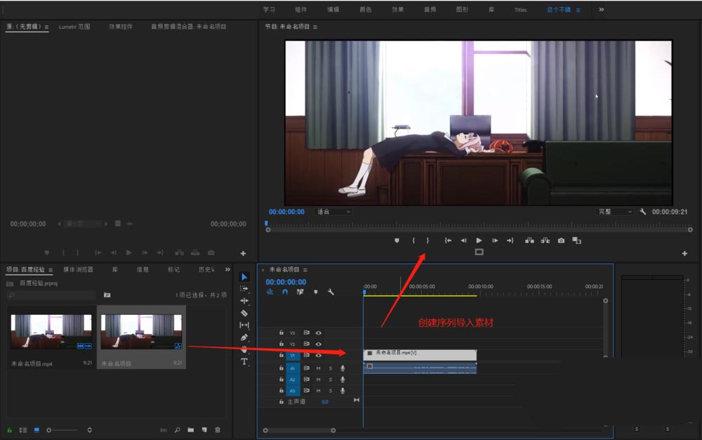 1、在PR軟件中新建一個序列,然后導入素材并應用到序列中去。