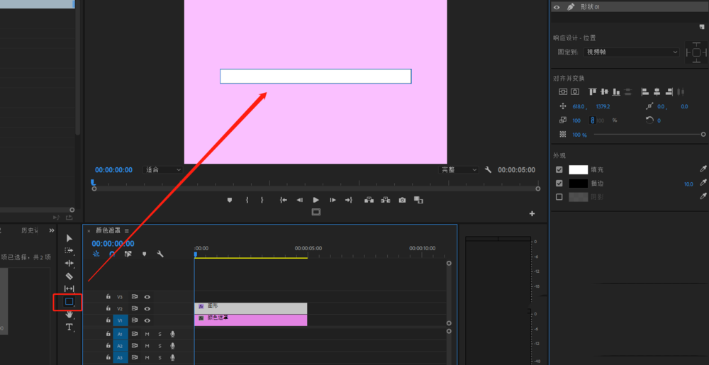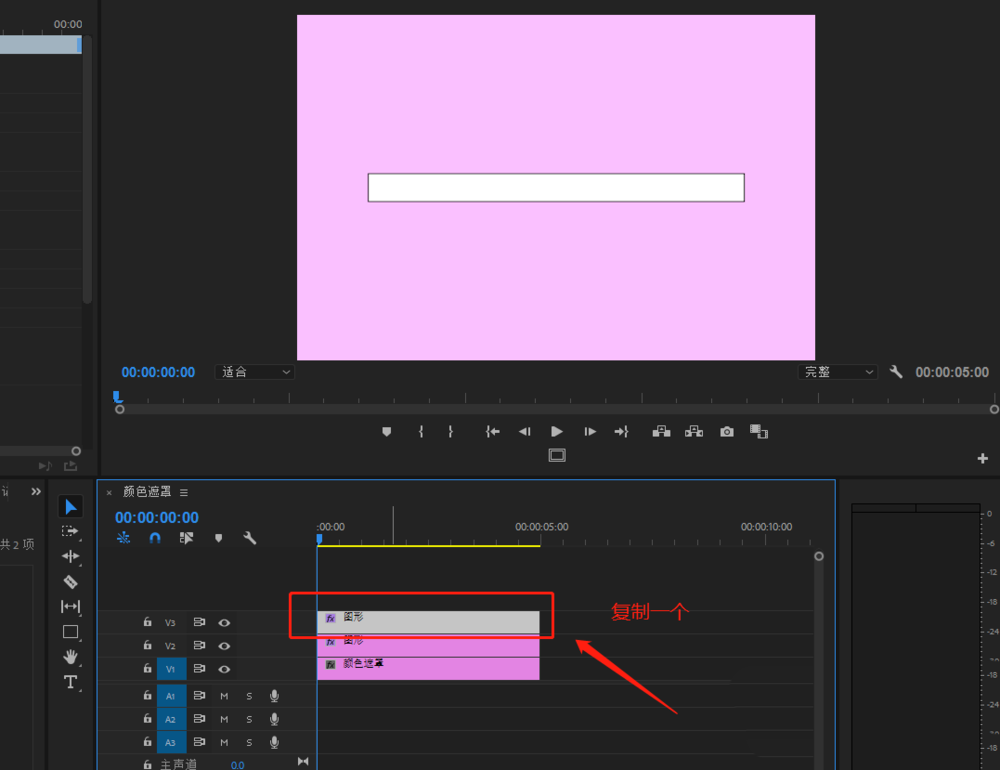 3、選中視頻軌道2的矩形圖形,在按住alt鍵來(lái)進(jìn)行復(fù)制得到一個(gè)同樣的矩形到視頻軌道3.