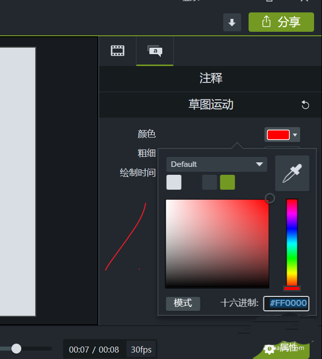 6、但是發(fā)現(xiàn)我們的素材時(shí)間比較長(zhǎng)它會(huì)制的比較快, 該怎么解決這個(gè)問(wèn)題呢? 打開(kāi)左側(cè)的屬性面板找到繪制時(shí)間, 將繪制時(shí)間設(shè)置為三到四秒,和素材時(shí)長(zhǎng)同步即可
