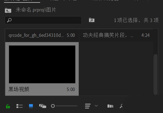 3、接著,我們?cè)谧笙陆堑倪@個(gè)媒體面板,有一個(gè)新建項(xiàng),就是文件夾右邊的那個(gè)選項(xiàng),我們點(diǎn)擊它新建一個(gè)黑場(chǎng)視頻