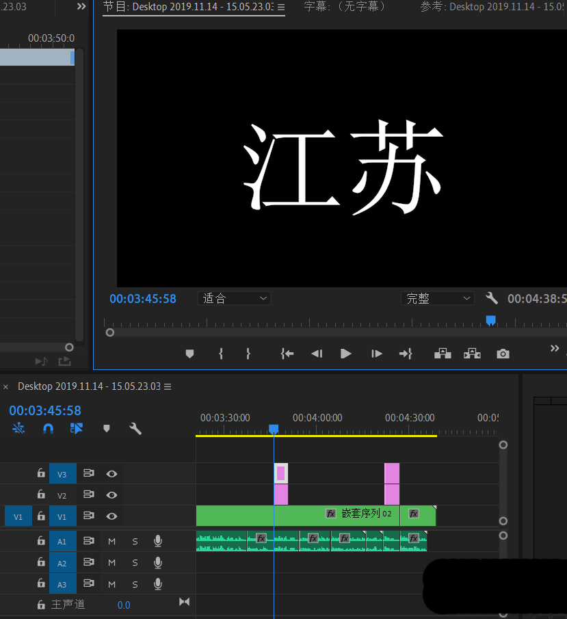 4、我們把它拖拽到這個(gè)字幕文件的下方,就是如圖所示的這樣一個(gè)效果,我們框選這兩個(gè)素材右鍵-嵌套