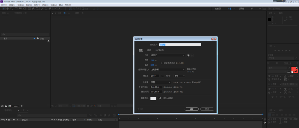 1、打開軟件,新建一個合成,合成大小可以自定,這里我是設置的1280*1280