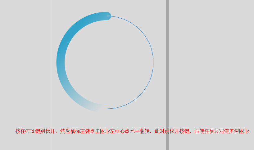 3、如圖所示選擇透明度工具,拉出線端一端的漸變透明度,再水平翻轉(zhuǎn)復(fù)制圖形。一定要仔細(xì)看這個步驟的最后一張圖的操作步驟。