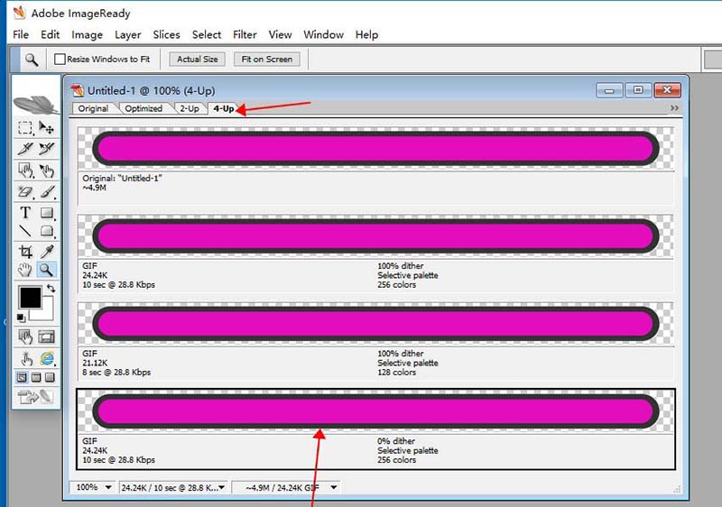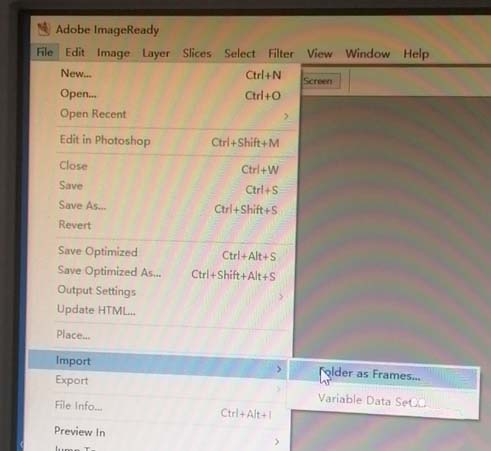 6、打開Adobe ImageReady CS2,導入剛才的圖片序列,選擇優化好的第四聯,再按CTRL+SHIFT+AIT+S輸出GIF格式,設置好保存路徑,導出后得到動態圖片。