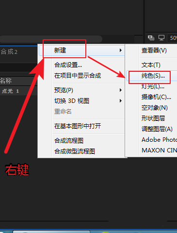 3、在圖層面板空白處右鍵——新建一個(gè)純色層。顏色為黑色,確定。