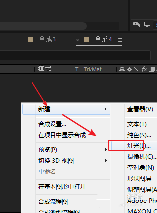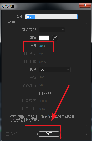 2、在圖層面板空白處右鍵——新建一個(gè)燈光。彈出對(duì)話框,設(shè)置強(qiáng)度為30,確定。并將燈光重命名為“123”,記住這個(gè)名字。