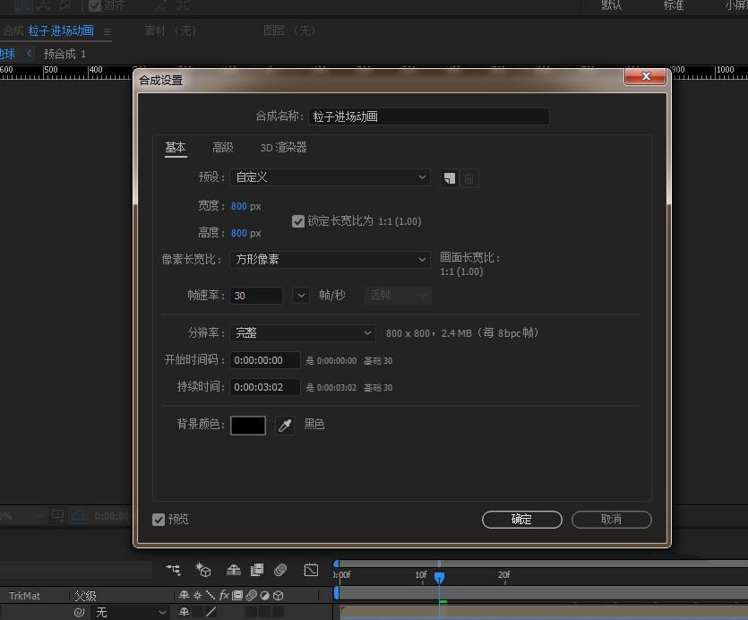 1、打開AE軟件,命名粒子進(jìn)場動畫,調(diào)整相應(yīng)的參數(shù)。