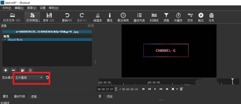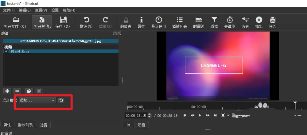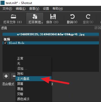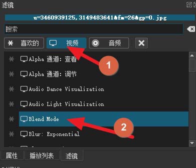 3、添加混合模式效果。點(diǎn)擊+號(hào),在視頻選項(xiàng)卡下找到Blend Mode(混合模式),雙擊添加。