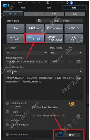 5、編碼選擇“編碼選擇“HH265265”,然后點擊下面的“開始”按鈕”,然后點擊下面的“開始”按鈕