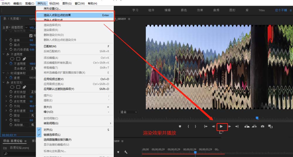 6、執行渲染入點到出點的效果,渲染完成之后播放時間軸查看效果,一個波形變形的動態動畫效果就出現了。