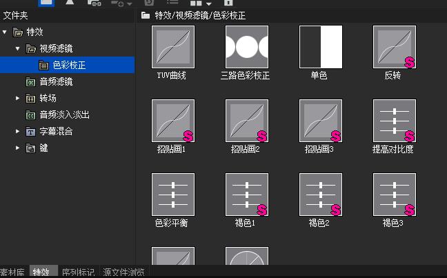 EDIUS的特效有視頻濾鏡、音頻濾鏡、轉場、音頻淡入淡出、字幕混合、建,這里介紹視頻濾鏡,它的作用是進行色彩校正,如圖,