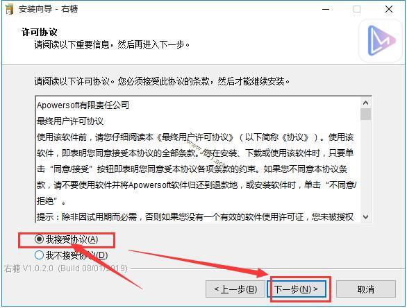 4、閱讀并同意軟件使用協議,點擊“下一步”
