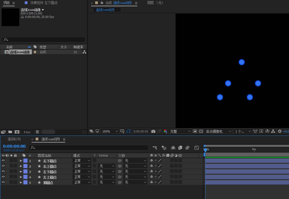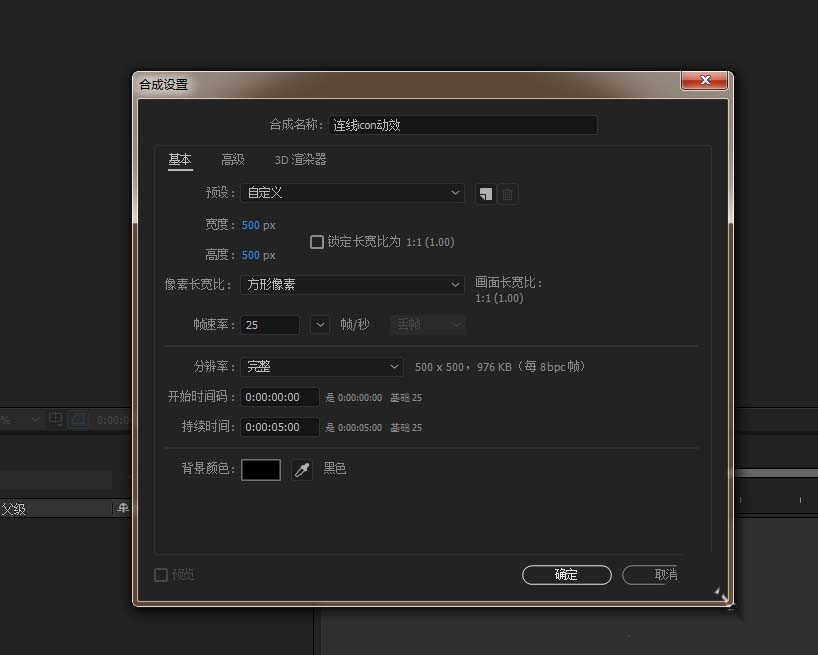 1、打開AE軟件,新建合成,命名連線icon動效,調整相應的參數。