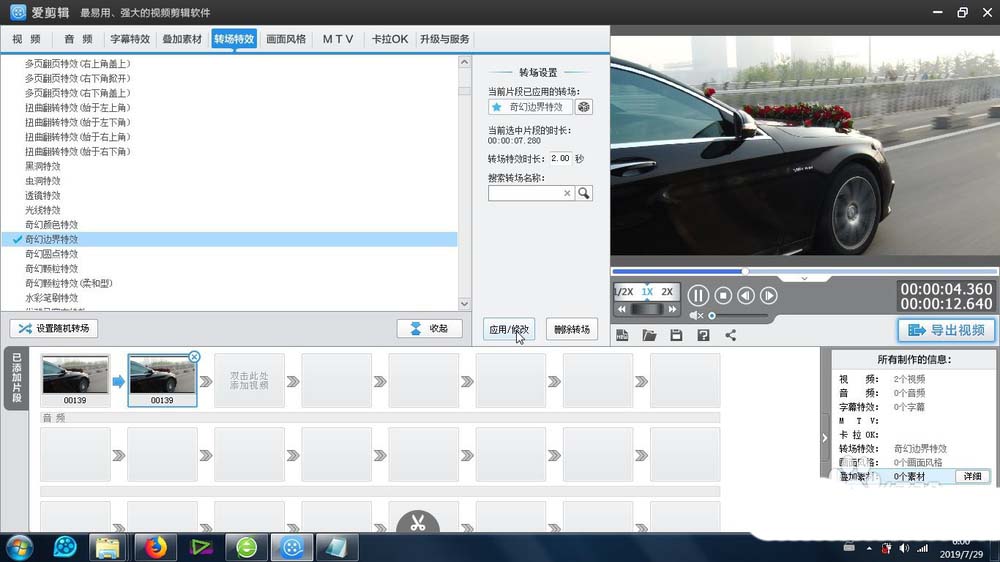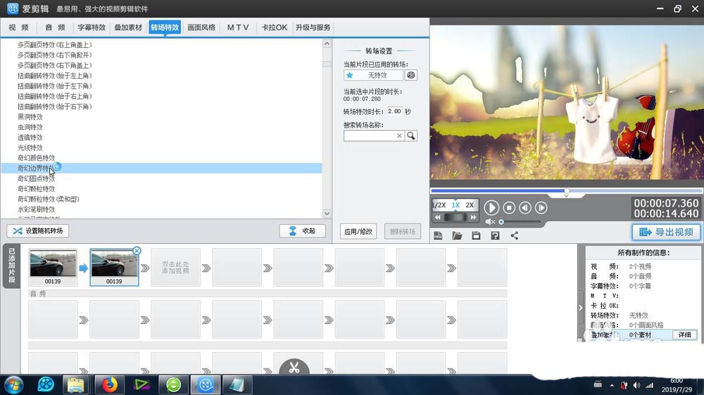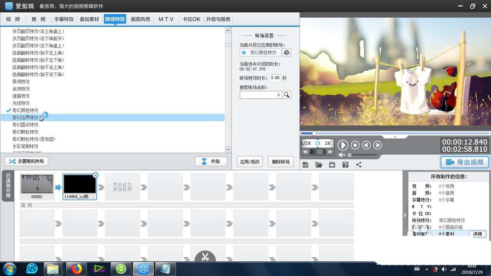 愛剪輯兩個(gè)視頻之間怎么使用轉(zhuǎn)場特效?