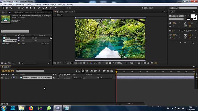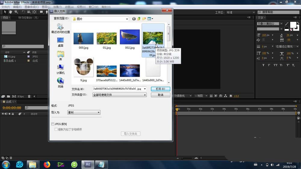 1、首先就是素材的導入,這個導入的方法很簡單,不再贅述,將素材庫的素材拉至合成里面的時間線上