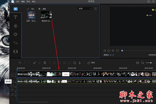 2,進入到軟件之后,第一件事情當然是要先導入想要編輯的視頻以及畫中畫視頻啦,畢竟巧婦難為無米之炊,大家可以導入自己認為有意思的視頻內容,當然也包括歌曲MV、電影、綜藝等類型,在導入之后首先需要將視頻文件導入到下方的時間線中,接著將畫中畫視頻文件導入到相應的“畫中畫”時間線中,如下圖所示: