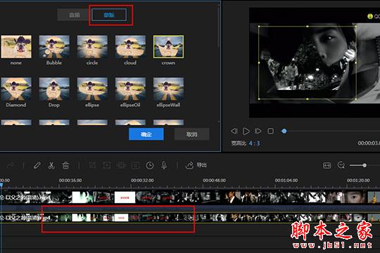4、如果你還想要調整編輯畫中畫的樣式,還可以在蒙版中進行選擇,其中就包含皇冠形、心形、云朵形等,你可以自定義選擇適合整體視頻風格的樣式,如下圖所示:
