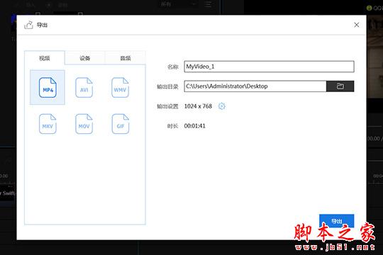 5、在導出界面,大家可以選擇合適的視頻格式以及詳細設置,最后選擇輸出目錄點擊“導出”即可導出合并成功的視頻,如下圖所示: