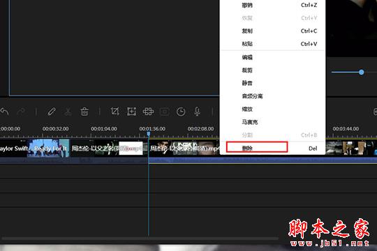 3、在成功分割并找取到合適視頻內容后,就可以刪除不需要的視頻內容了,右鍵選擇視頻分段,點擊其中的“刪除”選項進行刪除,如下圖所示: