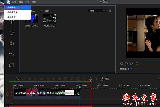 4、在下方紅框標注內的保留下來的視頻就是最終合并的視頻內容了,接著點擊上方的“導出”功能,選擇其中的“導出視頻”選項,如下圖所示: