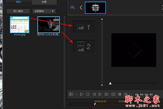 4、在上方點(diǎn)擊模板后,將封面圖片放置到“1”中,將視頻素材放置到“2”中,如下圖所示:
