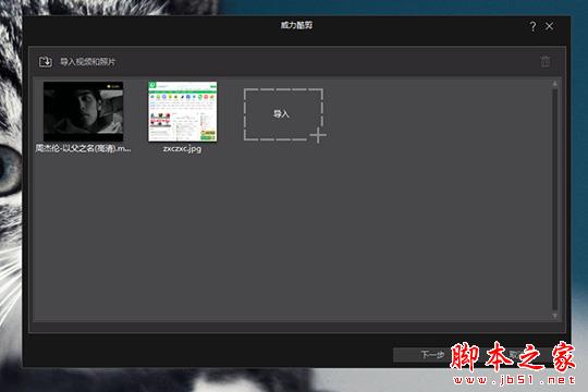 2、在上一步點(diǎn)擊后,將會出現(xiàn)導(dǎo)入視頻和照片的界面,點(diǎn)擊“導(dǎo)入”選項(xiàng)即可開始導(dǎo)入素材,視頻就是你想要設(shè)置封面的視頻,而照片則是等下所要設(shè)置的封面圖片,全部導(dǎo)入完成后點(diǎn)擊“下一步”選項(xiàng),如下圖所示: