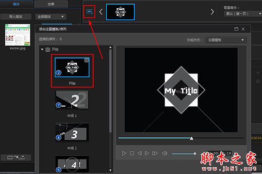 3、彈出主題設(shè)計(jì)器的界面,在剛進(jìn)入到此界面時(shí)將會出現(xiàn)“添加注意模板/序列”的窗口,如果你不小心關(guān)閉了此界面,只需點(diǎn)擊上方紅框標(biāo)注內(nèi)的“添加更多序列”進(jìn)行主題模板的添加,用戶可以根據(jù)自己的需要合適的封面,小編默認(rèn)選擇“開始”后勾選此序列右上角的框,最后點(diǎn)擊“確定”,如下圖所示: