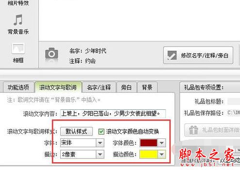 首先啟動數碼大師,單擊相片文件選項,導入一組相片后,單擊滾動文字與歌詞按鈕。