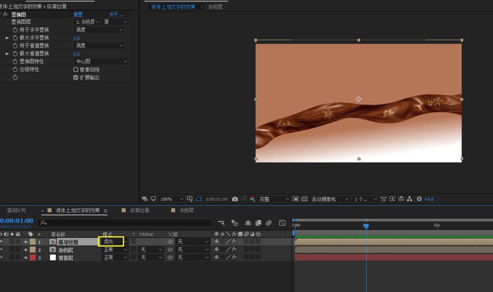 7、選中文字預合成,把混合模式為柔光,這樣可以讓文字更好溶入到液體里;