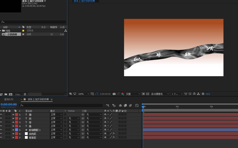 ae想要實現在液體上加文字的效果,該怎么制作流動的液體中有文字的效果呢》下面我們就來看看詳細的教程。
