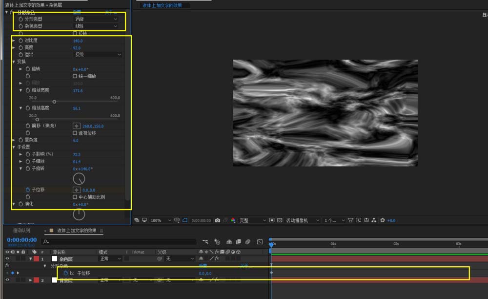 3、ctrl+y新建一個純色層子位移k關鍵幀:0,500;