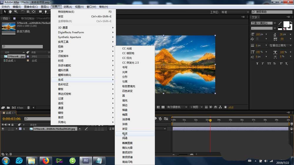 4、這個效果還可以這樣添加:上方的:效果-生成-電波