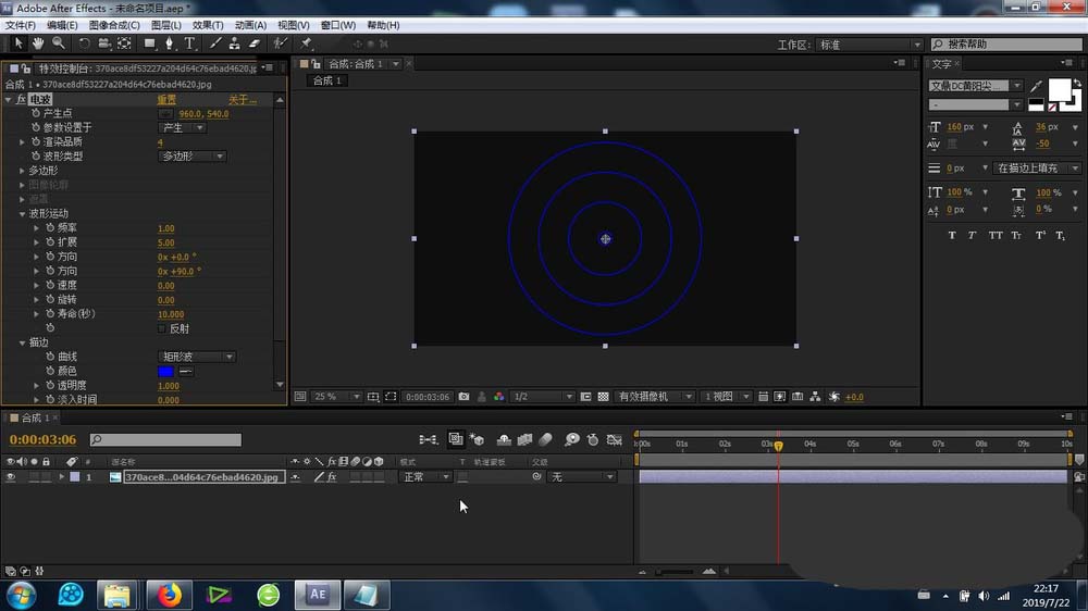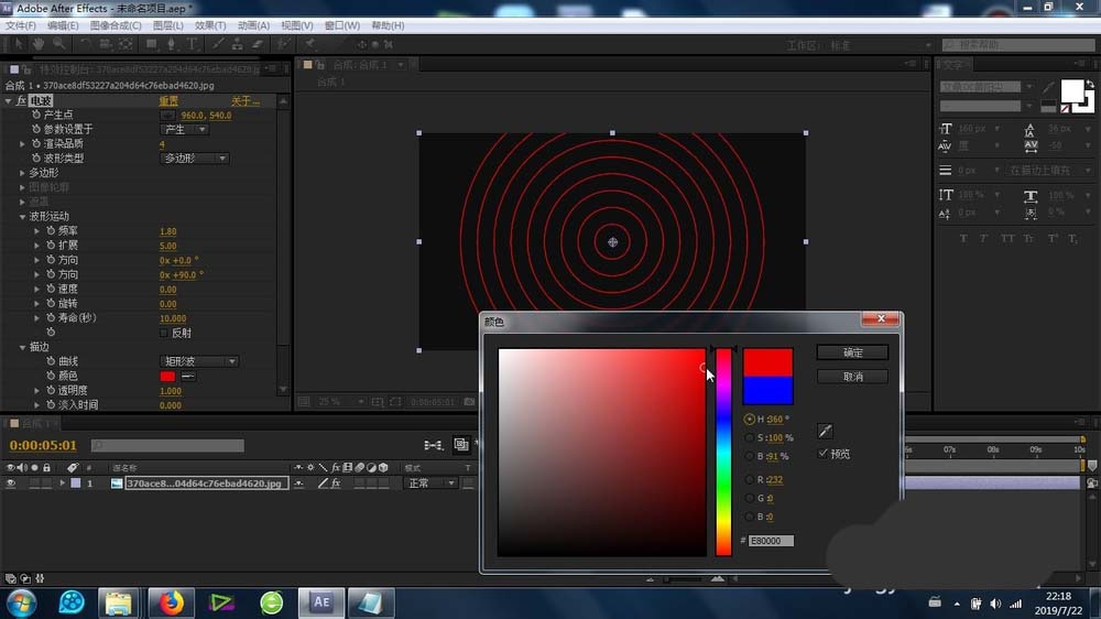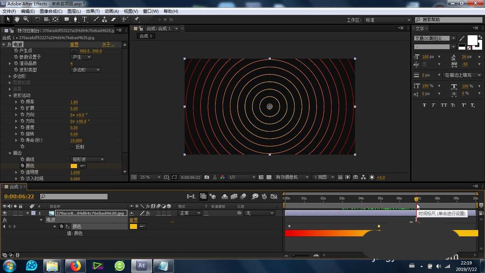 6、可以打開這個電波效果的設置參數,進行-混合模式、透明度以及顏色等重要參數的調整