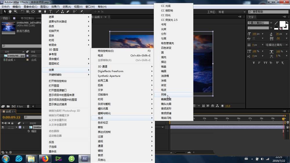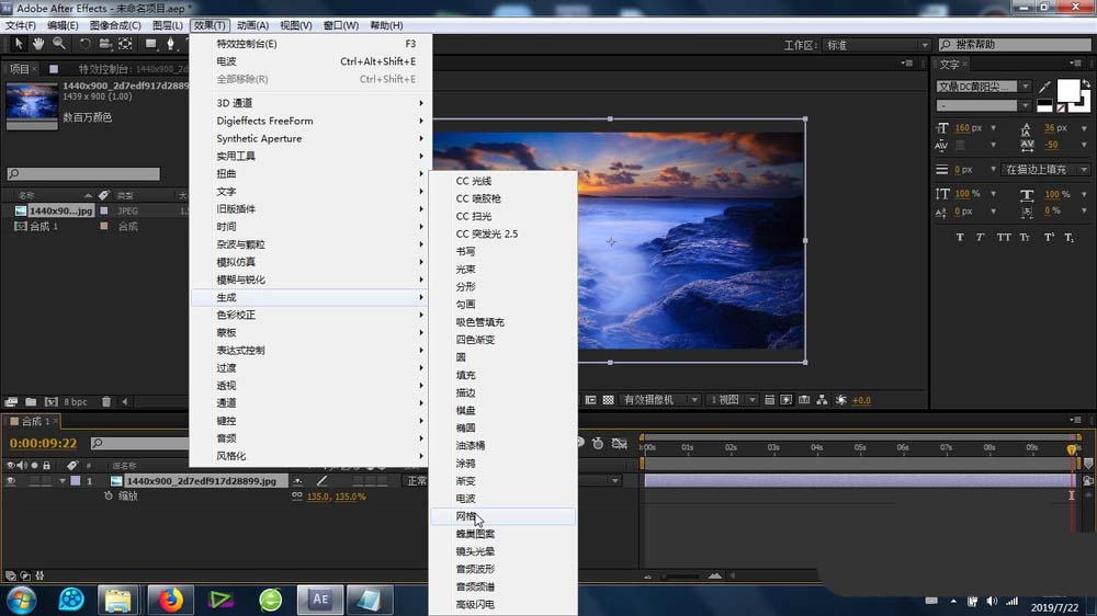 3、選中素材,右鍵選擇添加的是:效果-生成-網(wǎng)格