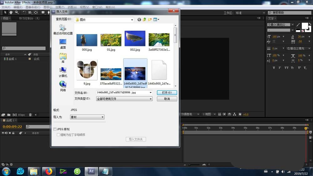 1、首先就是素材的導(dǎo)入,這個導(dǎo)入的方法很簡單,不再贅述,將素材庫的素材拉至合成里面的時間線上