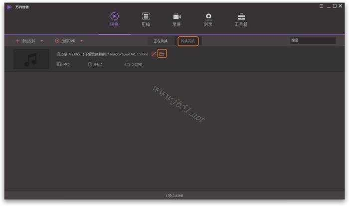 當(dāng)轉(zhuǎn)換完畢后,您可以在轉(zhuǎn)換完成的標(biāo)簽頁尋找已提取的MP3音頻文件。點(diǎn)擊文件夾圖標(biāo)即可打開視頻轉(zhuǎn)換完成的輸出文件夾。