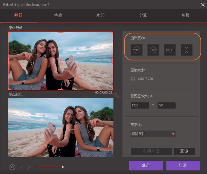 這里有四種選擇讓您順時針旋轉(zhuǎn)、逆時針旋轉(zhuǎn)、左右顛倒以及上下顛倒視頻。