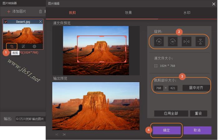 裁剪圖像:單擊縮略圖上的裁剪按鈕,您將獲得裁剪和旋轉圖片的窗口。單擊確定按鈕以保存更改。