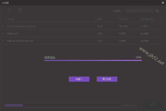當刻錄過程完成后,一個信息將會顯示在程序界面中。