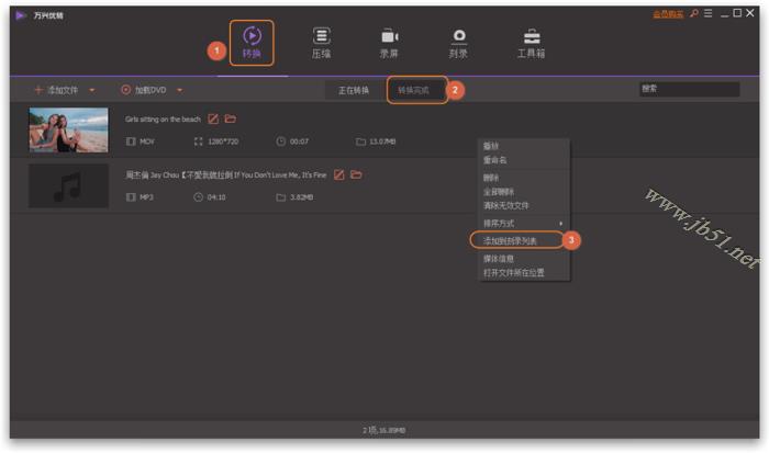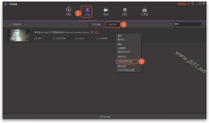 切換標簽頁壓縮 > 壓縮完成尋找您要刻錄的視頻,右鍵點擊并選擇添加到刻錄列表。