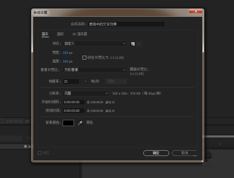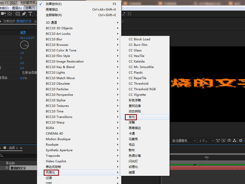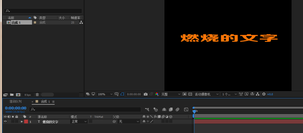 1、打開AE軟件,命名燃燒中的文字效果,調整相應的參數。