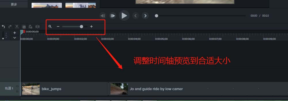 4、選擇控制縮放時間軸窗口預覽的按鈕命令,點擊放大時間軸窗口預覽到合適。
