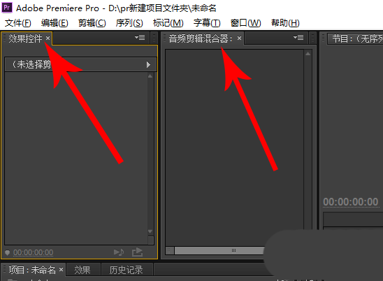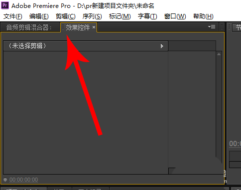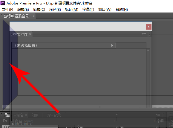 4、這時可以看到效果控件面板出現在了音頻剪輯混合器面板的左側,兩個面板屬于并列關系