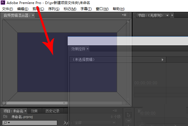 1、打開pr工作界面,按住浮動面板的控制按鈕,然后將其拖動至原來位置所在方向