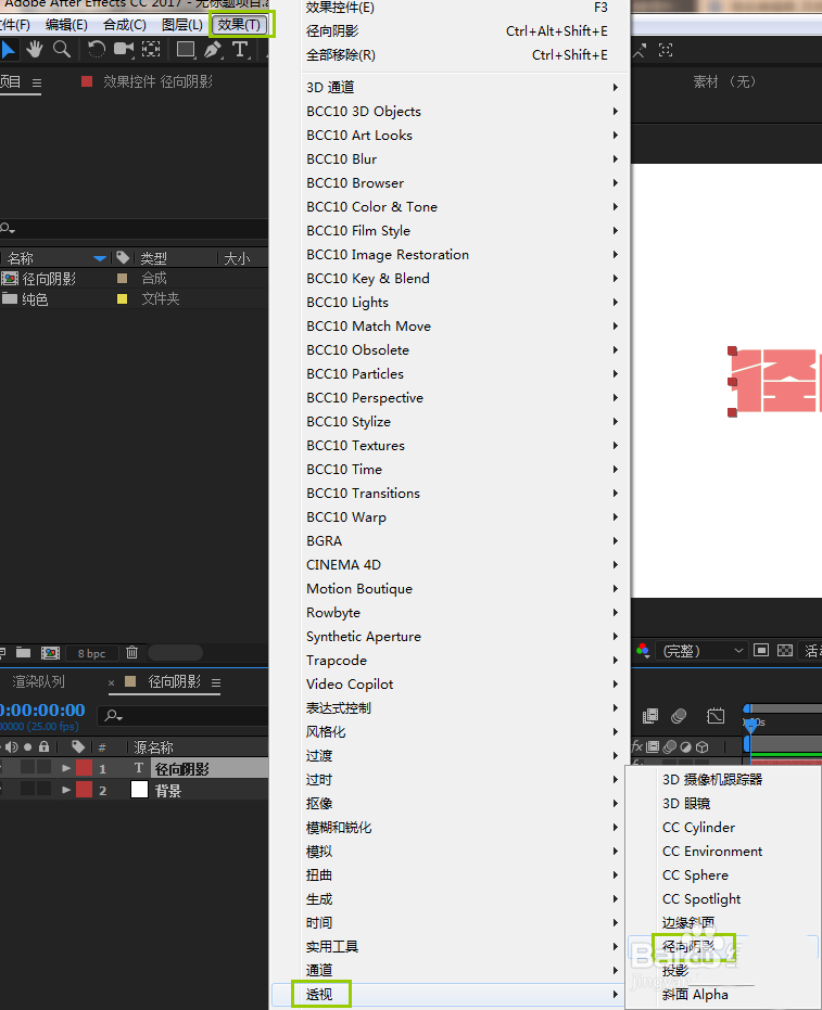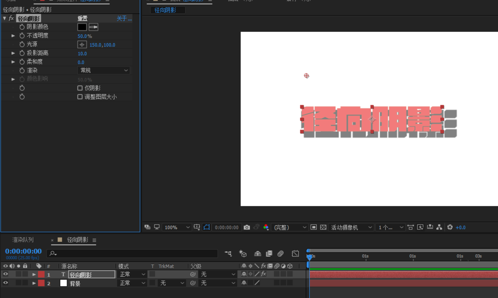 4、選中文本圖層添加徑向陰影;效果-透視-徑向陰影;